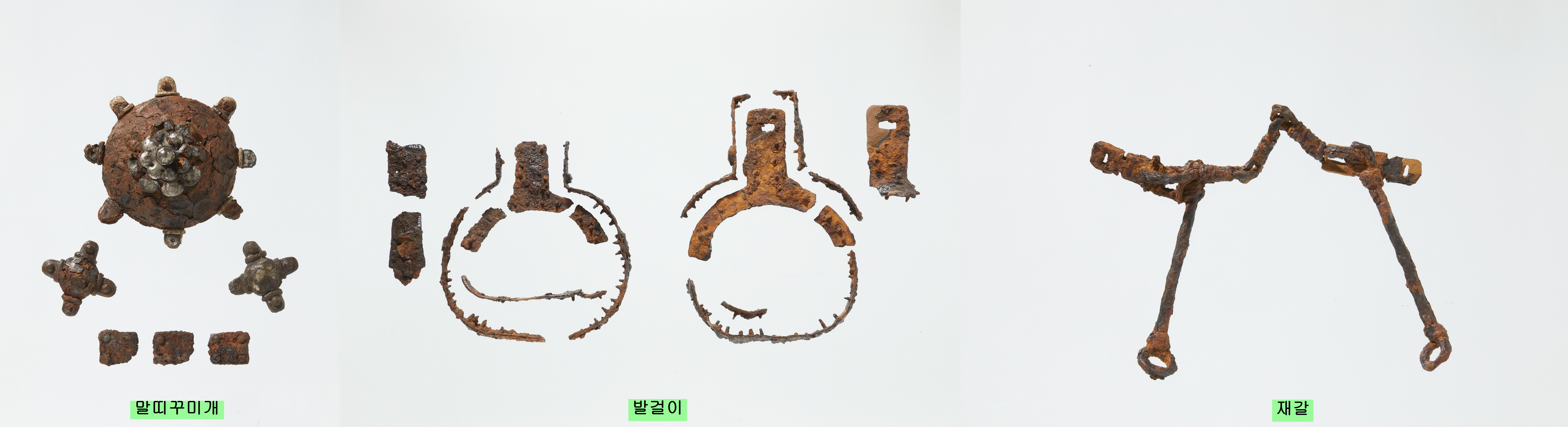 다카타에 따르면 왜계는 장고형 분구와 규슈계 돌방, 그리고 꼰 모양의 둥근고리큰칼(환두대도) 등이다. 백제계는 장식 목관과 말갖춤새 세트, 구슬류와 신발 등의 장신구, 그리고 목관의 안치방식 등을 꼽을 수 있다. 또 ‘왜+백제’는 금동관과 은제장식, 삼각형 철모(긴 나무 자루 끝에 날을 물려 찌르거나 던지는 무기) 등이다. 이밖에 무덤길 제사에 사용된 토기류는 마한 출신 토착세력의 요소가 보인다.