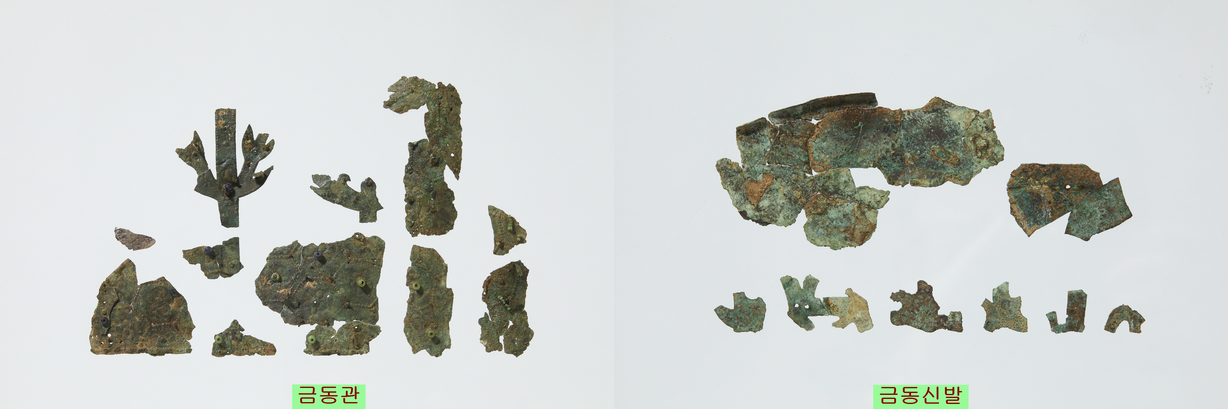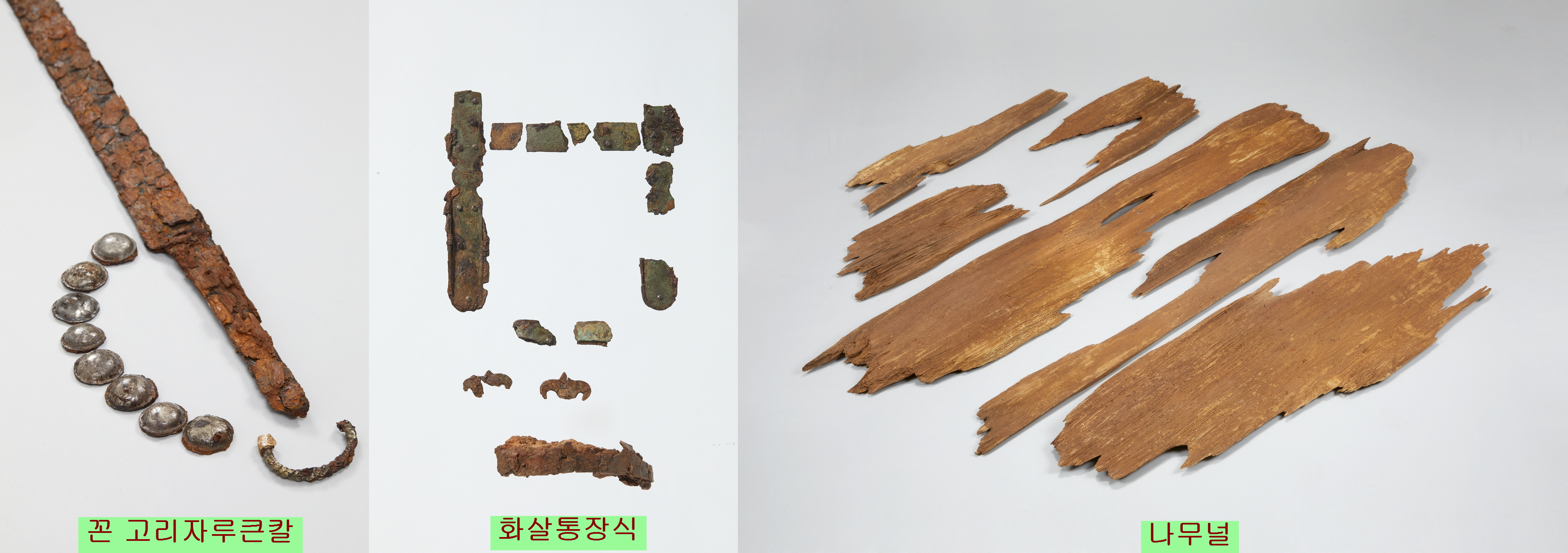 과연 일본의 고분형식이라는 장고분이 맞았다. 무덤 내부에서도 일본색이 보였다. 천정과 4벽, 문의 안쪽에 모두 주칠(朱漆)이 되어 있었다. 빨갛게 칠했다는 얘기다. 출토된 대형 칼의 경우 손잡이 구멍이 일본 후나야마(구마모토현·熊本縣) 고분의 유물과 유사한 형태이다. 무덤에서는 무령왕릉에서 쓰인 금송제 관의 흔적이 보였다. 금동관과 금동신발의 파편도 여러점 출토됐다.