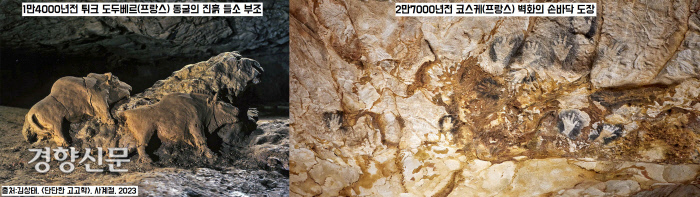 그 작품 근처의 진흙 바닥에 어지러이 찍힌 사람 발자국이 남아있는데요. 2만7000년전 프랑스 코스케 벽화에는 손바닥 도장이 즐비합니다. 공동작업을 펼친 흔적이 아닐까 싶어요.
