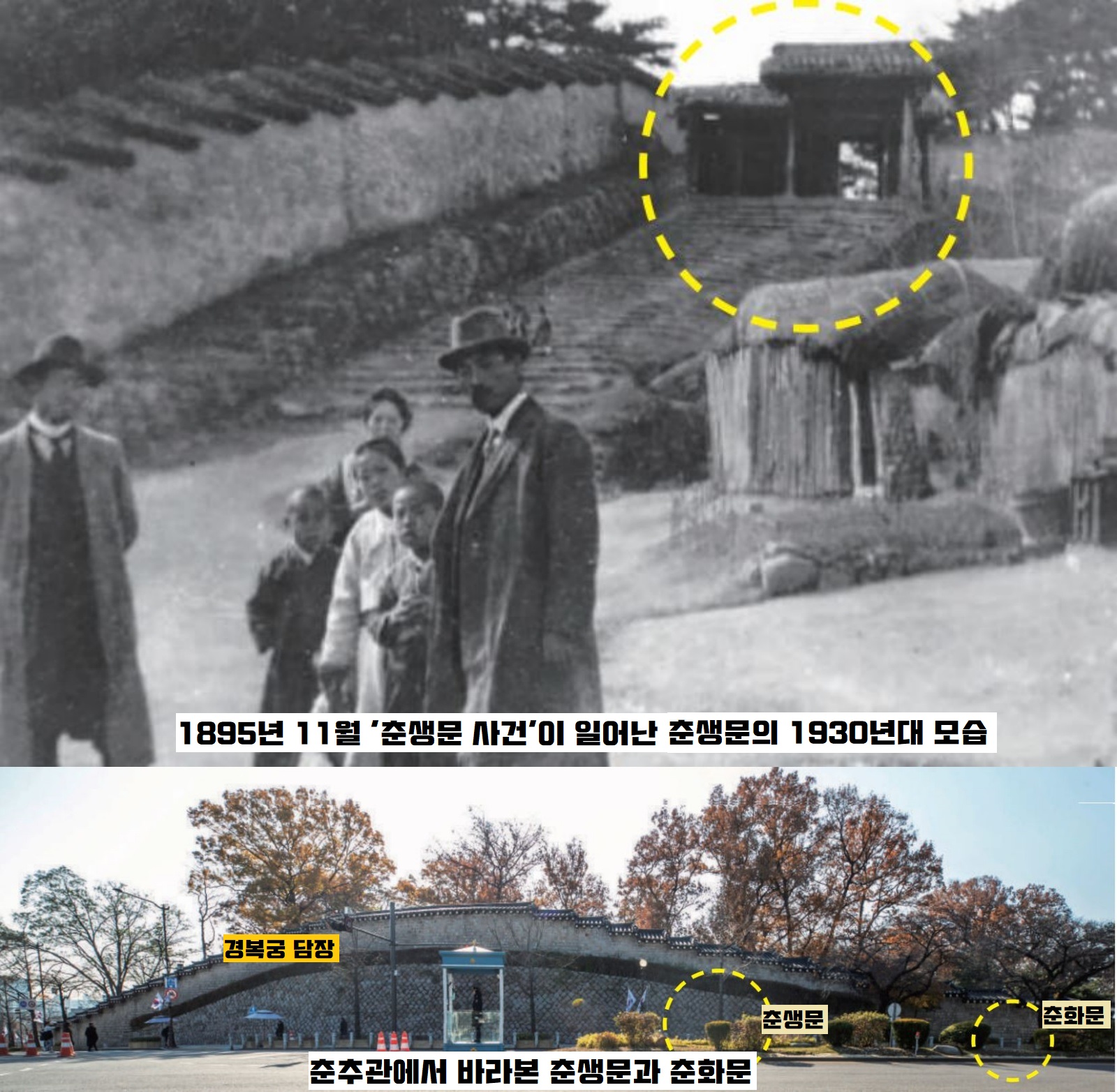 이중 총리공관 쪽 능선과 연결되는 춘생문은 1895년(고종 32) 11월 일어난 ‘춘생문 사건’으로 잘 알려져 있다.