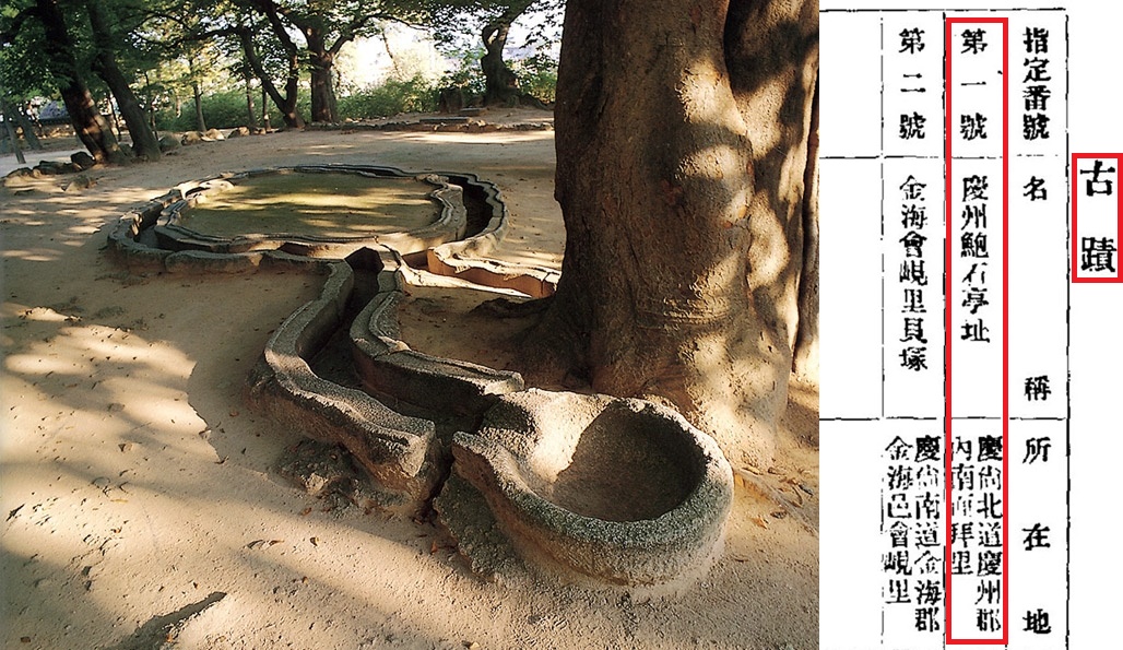 그런 포석정에 일제는 물이 드나드는 출수구도 없이 괴상망측하게 복원해놓고는 ‘고적 1호’라 한 게 아닐까요. ‘신라의 망국=대한제국의 망국’으로 여기려는 일제의 숨은 의도가 담겨 있었다고 봐야 하겠죠.