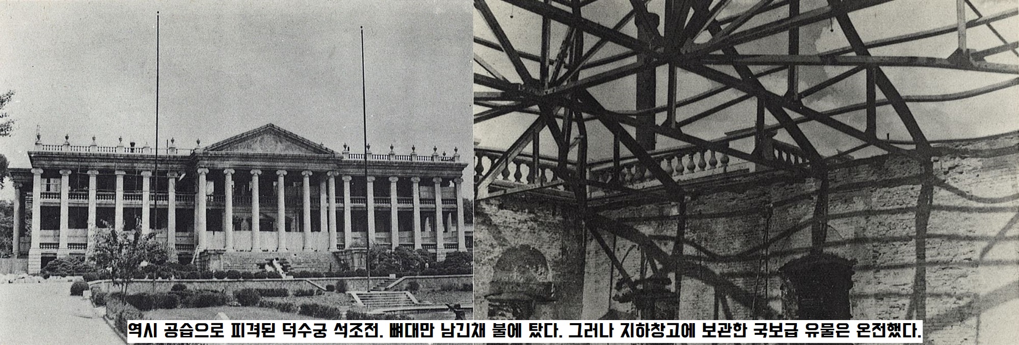 기막힌 일이 있습니다. 국보급 핵심유물을 시외곽으로 분산하라는 북한측의 명령을 따르지 않고 덕수궁미술관 지하창고로 옮긴 박물관원들의 판단이 ‘신의 한수’가 되었다는 겁니다. 덕수궁 석조전 역시 피격했지만 미술관 지하창고는 멀쩡했던 겁니다. 만약 서봉총·금령총 금관과, 두 구의 국보 반가사유상 같은 국보 유물을 옮기지 않았다면 어찌 되었겠습니까. 모골이 송연하죠.