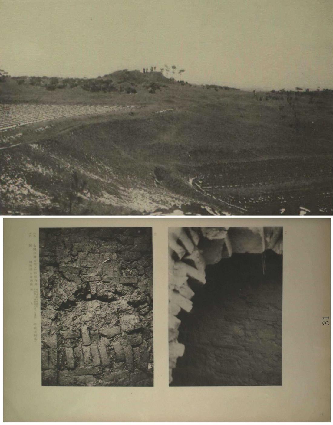 1909년 10월 당시 통감부 고건축 촉탁이었던 세키노 다다시가 제보를 받고 처음 파헤친 석암동 벽돌무덤(전실분). |출처:조선총독부, <조선고적도보>, 1915