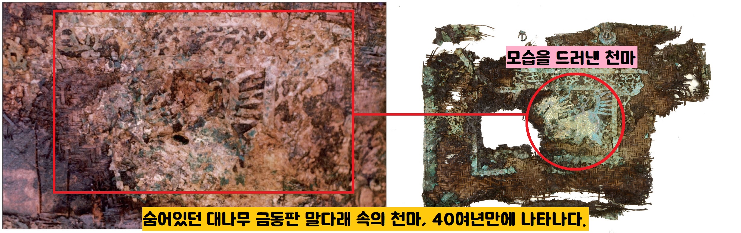 그때는 대나무 삿자리나 금동판이나 모두 심하게 부식되어 부서져 흩어져 있었기에 판별할 수 없었던 겁니다.