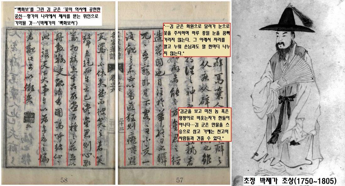 이 ‘김덕형’이 바로 박제가가 ‘김 군’이라 지칭한 ‘백화보’의 작가이자, 꽃에 미친 ‘꽃의 화가’로 성장한 인물이다.