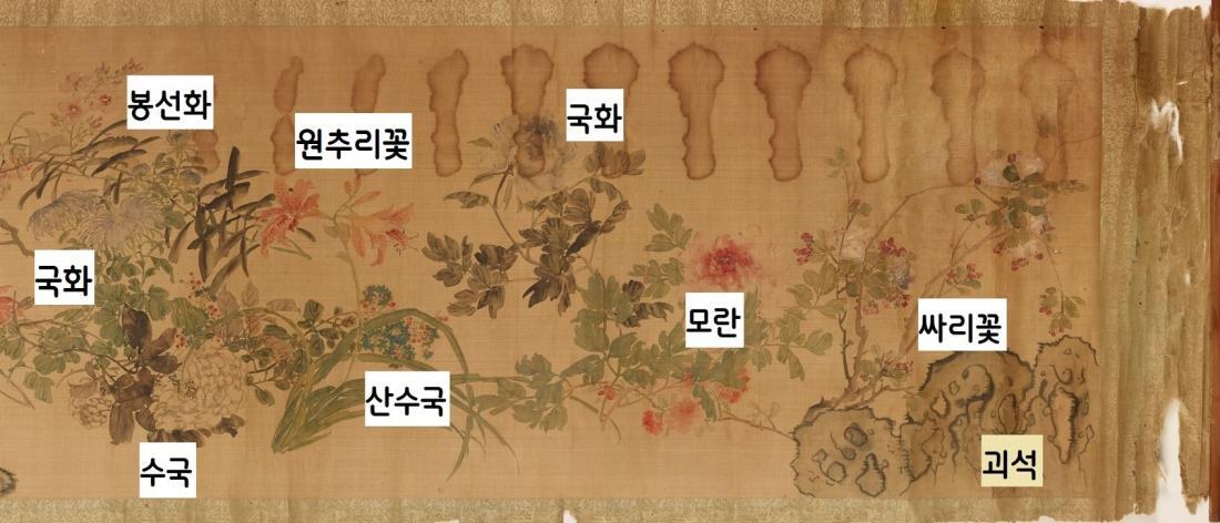 가로 4m80, 세로 75㎝인 비단 위에 그린 꽃그림이었다.