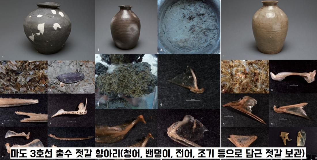 그중 마도 3호선에서는 청어, 전어, 밴댕이, 조기와 같은 소형 어류 뼈들이 뒤섞여 담겨있는 항아리가 보였다.