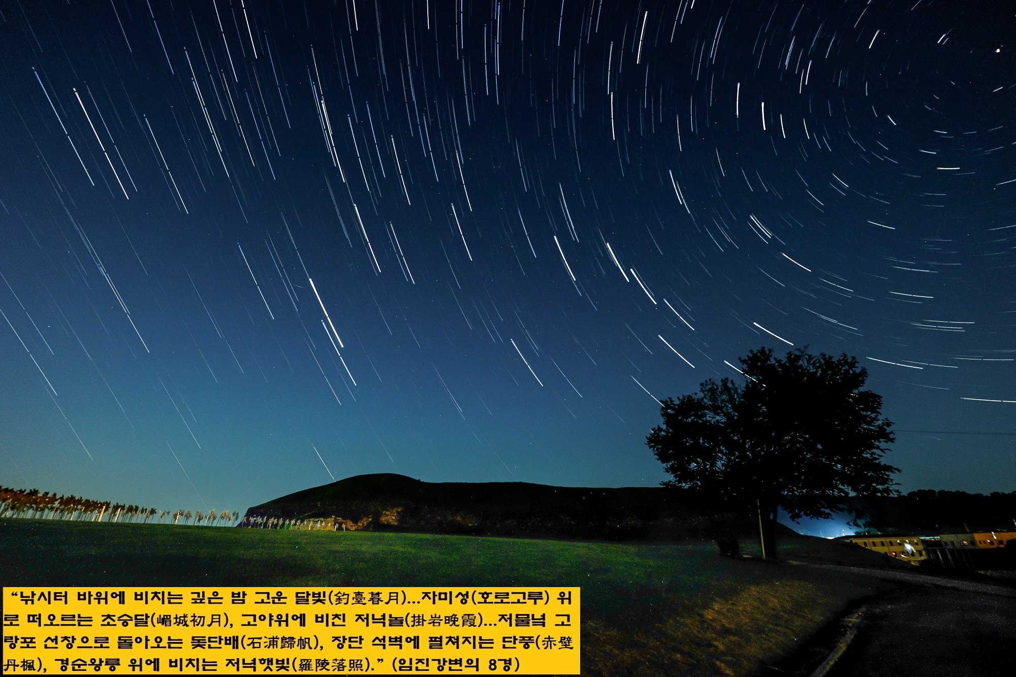 ‘낚시터 바위 위에 비치는 깊은 밤 고운 달빛(釣臺暮月), 자지포 여울에서 밤고기 잡는 어선의 등불(芝灘漁火), 자미성(호로고루) 위로 떠오르는 초승달(嵋城初月), 고야위(파주 장파리 임진강에 있는 바위)에 비친 저녁놀(掛岩晩霞), 장좌리 넓은 모래 벌에 열 지어 내려앉는 기러기 떼(平沙落雁), 저물녘 고랑포 선창으로 돌아오는 돛단배(石浦歸帆), 장단 석벽 좌우로 펼쳐지는 가을 단풍의 절경(赤壁丹楓), 신라 경순왕릉 부근에 비치는 저녁햇빛(羅陵落照)….’