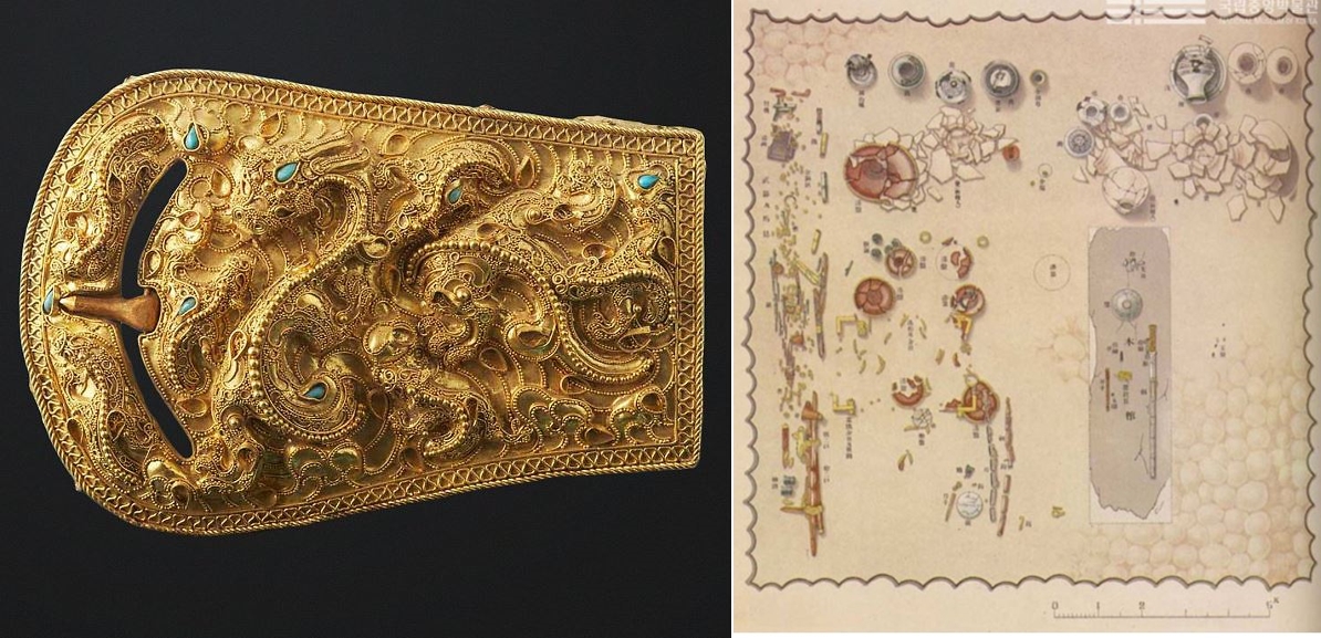 바로 1916년 평양 석암리 9호분에서 발굴된 ‘금제 띠고리’입니다. 1916년부터 펼쳐진 일제의 평양지역 낙랑고분 조사사업의 경우 그 의도가 매우 불순합니다.