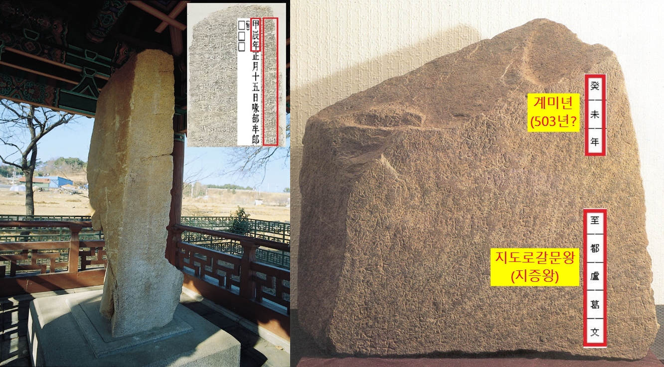 그런데 다음날 새벽 내린 비 때문에 붙어있던 흙이 씻겨나가자 돌 표면에서 글자가 보였습니다. 신고를 받고 국립경주문화재연구소 관계자들이 현장으로 달려갔는데요. 과연 비문 첫머리의 ‘신사(辛巳)~’라는 간지가 선명했답니다. 전문가들은 ‘501년’이나 ‘441년 신사년’에 새긴 비석일 것으로 추정했습니다. 엄청난 발견이었습니다. 501년이든, 441년이든 지금까지 발견된 신라 고비 가운데 시대가 가장 이른 것이기 때문입니다.