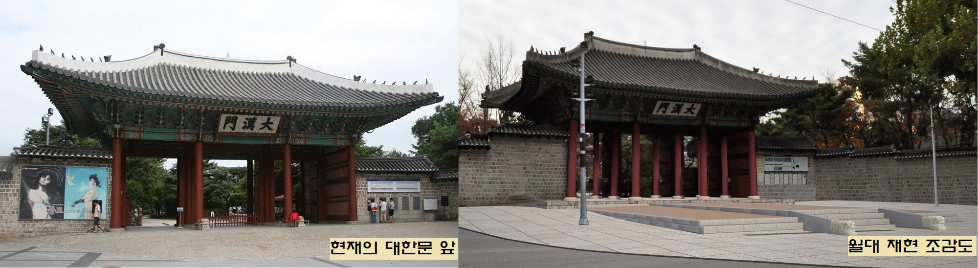 이 설이 맞다면 ‘대한문’은 시대착오적인 개명이라는 소리를 들을만 하죠. 이외에도 일제가 ‘큰(大) 도적놈(漢)이 드나드는 문’이라는 의미에서 지은 이름이라는 설도 있습니다.