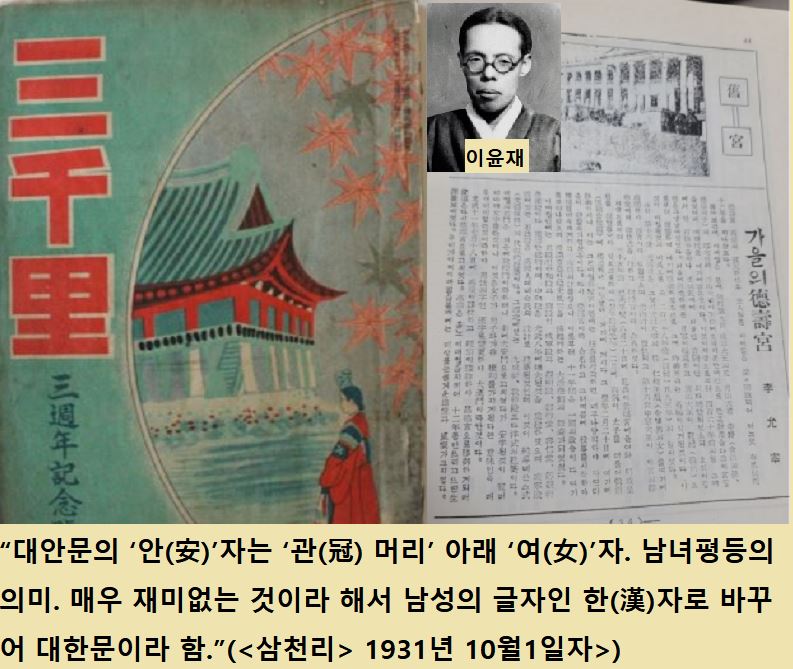 필자는 “대한문이야말로 제일 나이 어리고 팔자 사나온 문”이라고 지칭하면서 이름을 ‘대안문’에서 ‘대한문’으로 바꾼 이력을 소개했습니다.