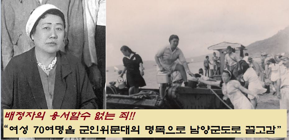 태평양전쟁이 발발하자(1941년 12월) 70노구의 몸으로 한국인 여성 70여 명을 ‘군인 위문대’라는 이름으로 남양군도에까지 끌고가 일본군 위안부 노릇을 하도록 강요했다는 것인데요. 한국의 젊은 처녀들을 일본군 위안부로 내몬 이력은 천고의 세월이 지나도 용서할 수 없는 ‘반민족 행위’가 아닐 수 없습니다.