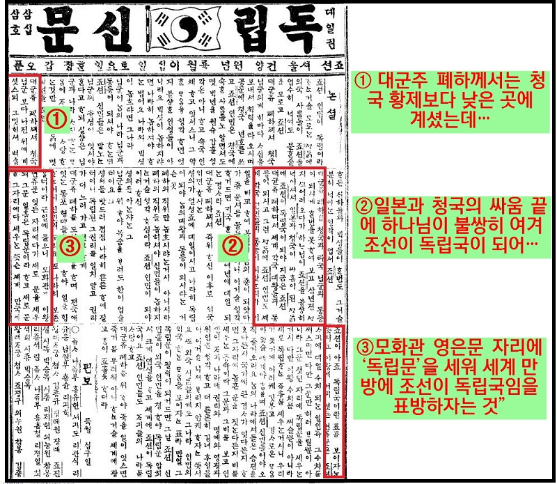 여기서 ‘독립’의 본질이 보이죠. 즉 청나라’, 즉 ‘중국으로부터의 독립’을 뜻한 겁니다.