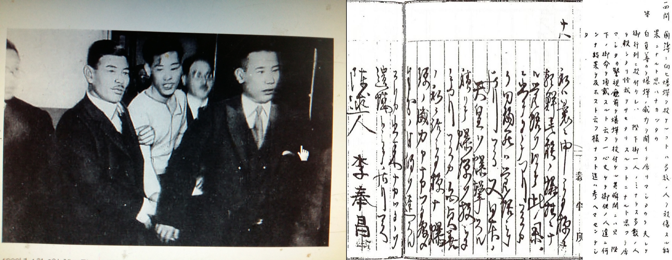 거사후 체포되는 이봉창 의사 모습. '신일본인'을 자처했던 이봉창 의사가 일왕에게 폭탄을 던지는 항일 투사가 되기 까지의 과정이 극적이다.