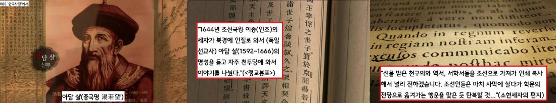 명나라 멸망과 함께 청나라 조정을 따라 북경으로 거처를 옮긴 소현세자 부부는 독일선교사 아담 샬과 깊은 친분을 나눴다. 아담 샬에게서 천구의와 역서, 서학서들을 선물로 받은 소현세자는 “조선으로 돌아가 인쇄·복사해서 선비들에게 널리 알리겠다”고 고마워했다.|사진출처:KBS ‘한국사전’ 캡처