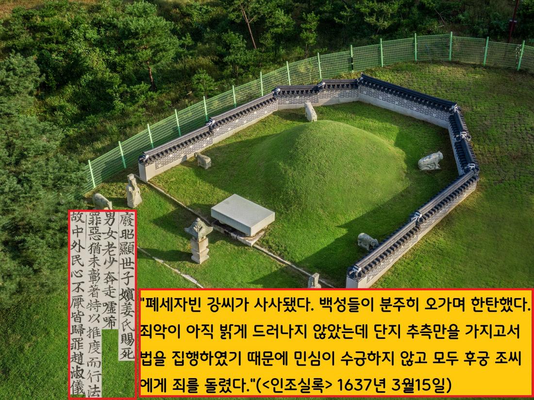 세자는 숱한 의혹 속에 급서했다. 인조는 남편을 잃은 며느리에게 ‘개XX’니 ‘강적(姜敵)’이니 하는 욕설을 퍼부으며 죽음으로 내몰았다. 사상 최악의 군주라는 손가락질을 받아도 싸다.