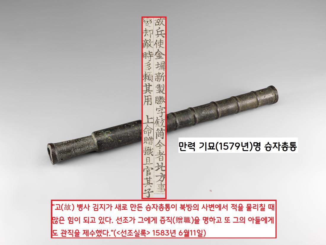 또 1588년 여진전 정벌을 주도한 북병사 이일(1538~1601)도 “적을 제압하는데 승자총통 만한 것은 없다”고 극찬했다.