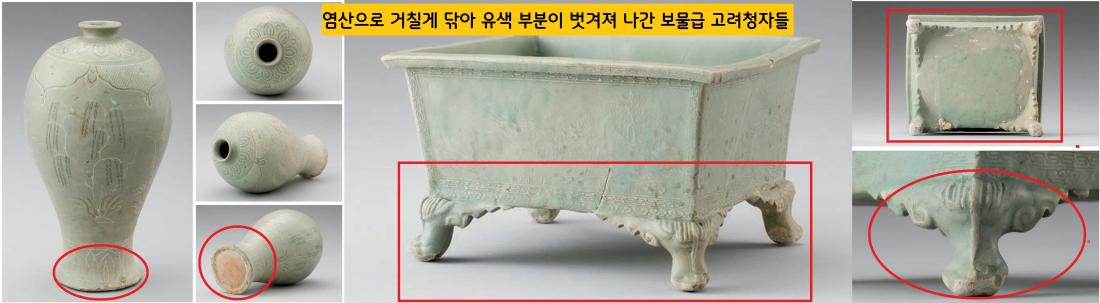 하지만 조급했던 도굴범들은 묽게 희석시키지 않은 강염산으로 유물을 마구 닦아댔다. 그러자 청자 본연의 미가 퇴색되었고, 표면에 바른 유약까지 벗겨져 나갔다. 이게 문제가 되었다. 밀거래 과정에서 가격이 뚝 떨어졌고, 도굴범과 거간꾼, 구매자 간 갈등이 빚어졌다. 덕분에 문화유산 사범단속반이 시간을 벌 수 있었고, 거래 현장을 잡을 수 있었다.