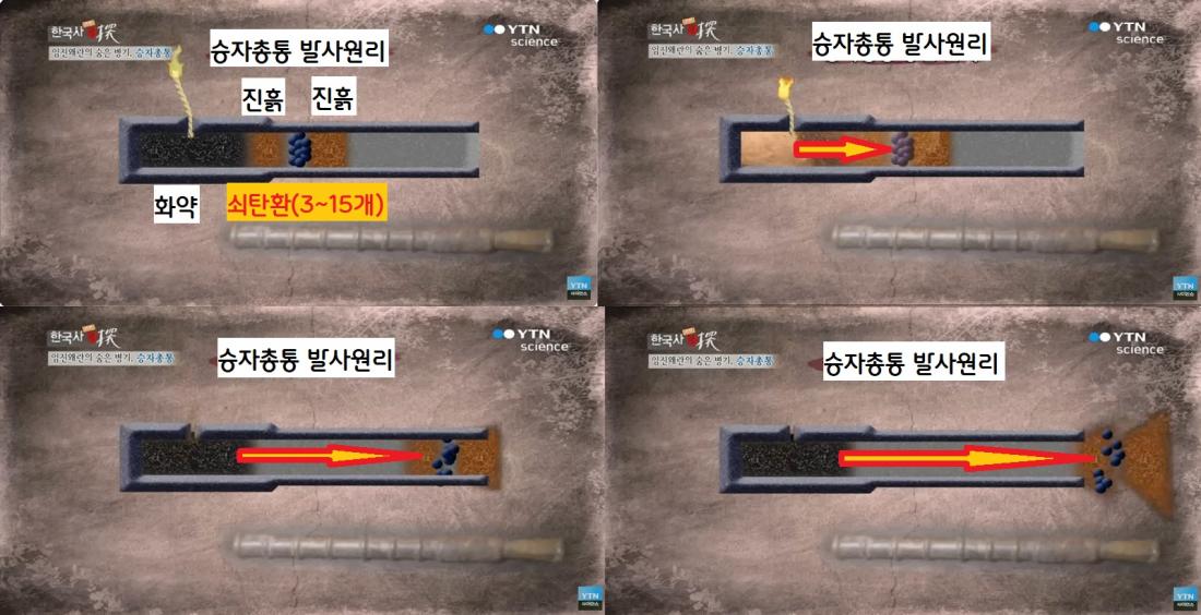 반면 왜군의 주력화기는 사수가 방아쇠를 당겨 불심지를 화약에 점화하는 조총이었다. ‘조준사격’이 가능했던 조총에 비해 승자총통은 ‘지향사격’만 할 수 있었다.