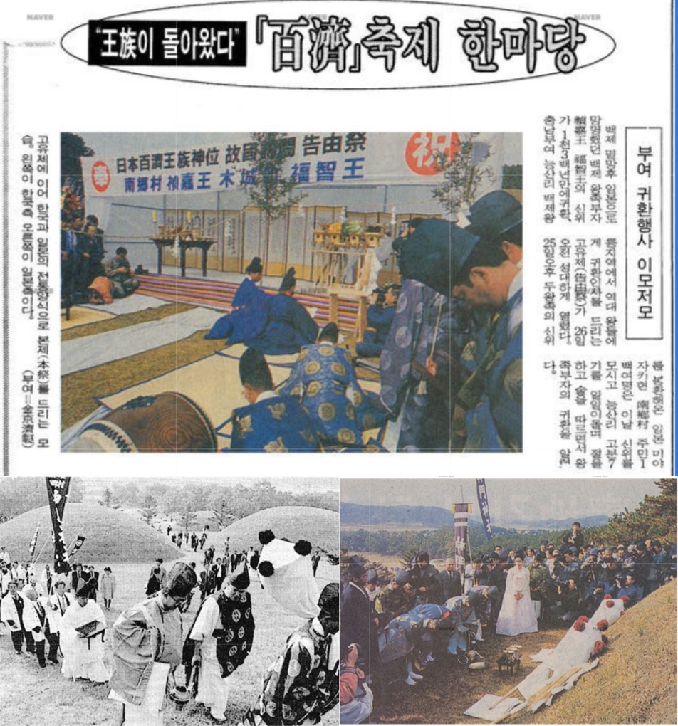 1993년 10월26일 충남 부여 능산리 고분에서 이색적인 행사가 열립니다. 일본 규슈(九州) 미야자키현(宮崎縣) 난고손(南鄕村) 주민들이 이곳을 찾아와 제사를 지낸 겁니다. 뜬금없죠. 왜 남의 나라 사람들이 우리나라에 와서, 그것도 누구를 위해 제사를 지낸단 말입니까.