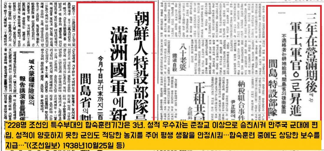 “성적이 양호하지 못한 군인도 적당한 농지를 주어 평생 생활을 보장한다…젠다이성(간도성·間島省)의 농촌 후방을 조선인에게 주어 개발하도록 하기 위함…합숙훈련 중에도 상당한 보수를 지급…제공하는 농지도 평생 생활에 충족할만….”
