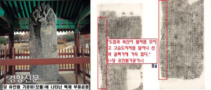 당나라 장수 유인원(생몰년 미상)의 공적을 기리려고 충남 부여에 세운 <당유인원기공비>(보물)도 “도침과 복신이 벌처럼 모이고 고슴도치처럼 일어나 산과 골짜기에 가득 찼다”고 했습니다.