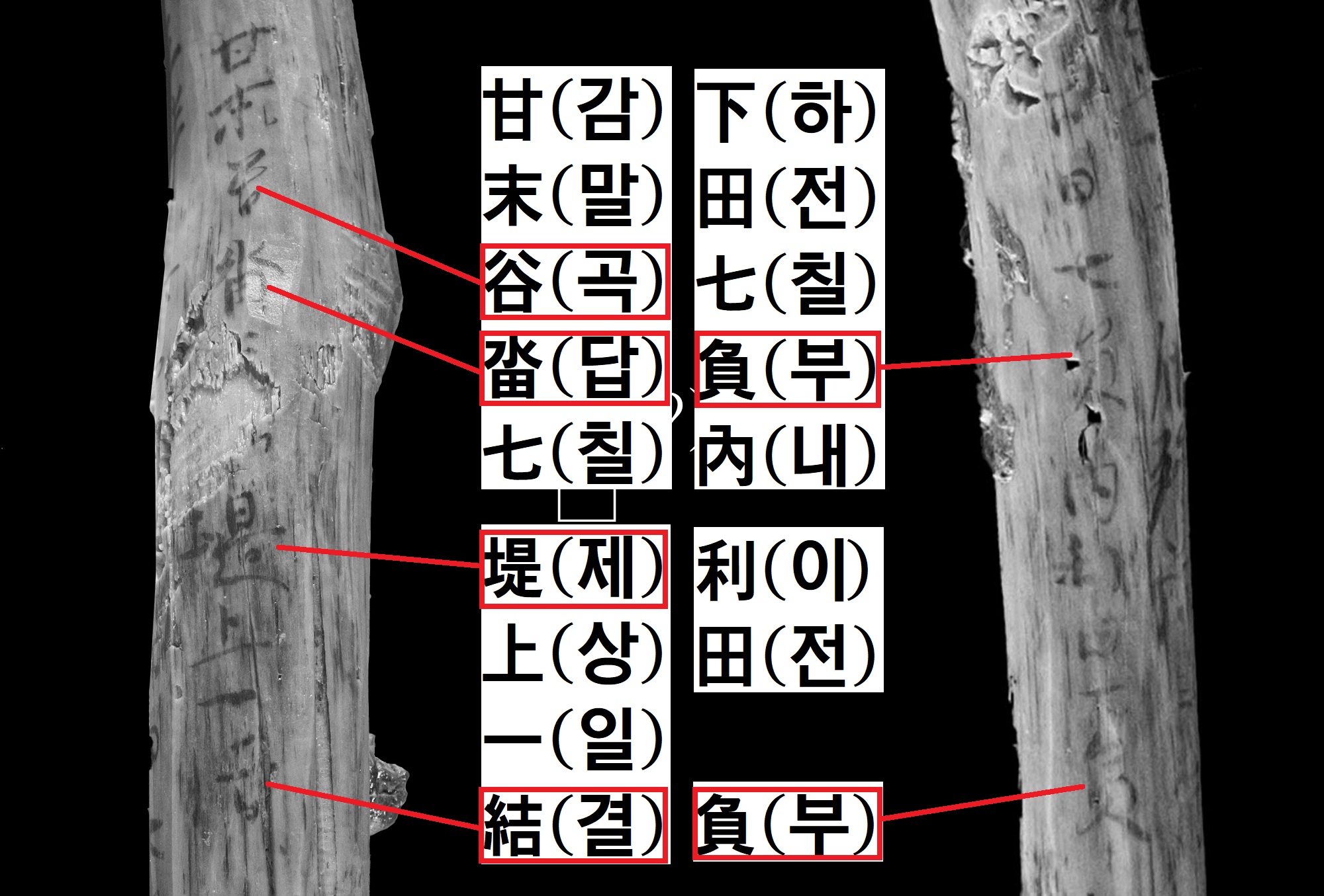 명문 가운데 눈에 띄는 글자들이 몇 보였습니다. 골짜기를 경계로 들어선 마을을 가리키는 ‘곡(谷)’과 논을 가리키는 ‘답(畓)’, 제방(둑)을 의미하는 ‘제(堤)’, 그리고 신라의 토지 면적 단위인 ‘결(結)’과 ‘부(負)’였습니다.