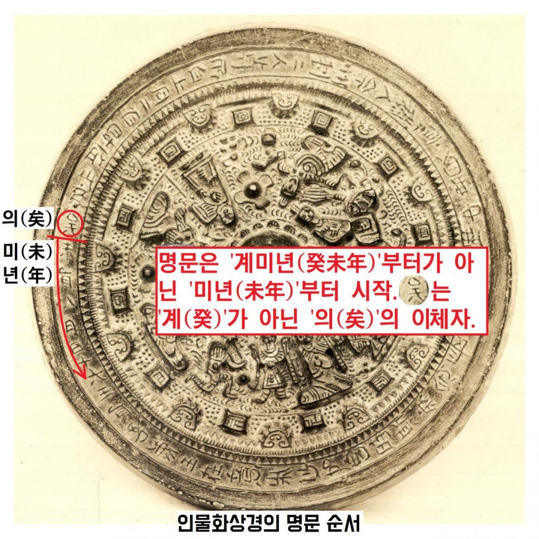 즉 인물화상경의 둘레에 빙둘러 쓰여진 48자의 명문은 ‘계미년’으로 시작되는 것이 아니라 ‘미(未)’부터 시작해서 ‘의(矣)’로 끝난다는 것이다.