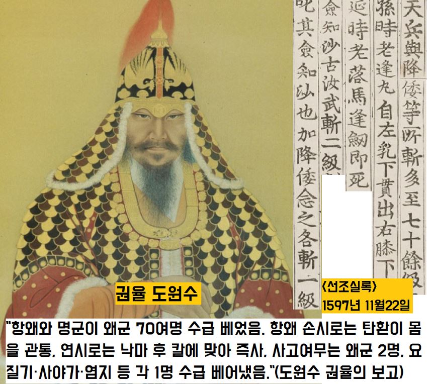 1597년(선조 30) 5월18일 도원수 권율(1537~1599)이 적진에 밀파된 첩자들의 보고를 정리해서 조정에 알렸는데요.