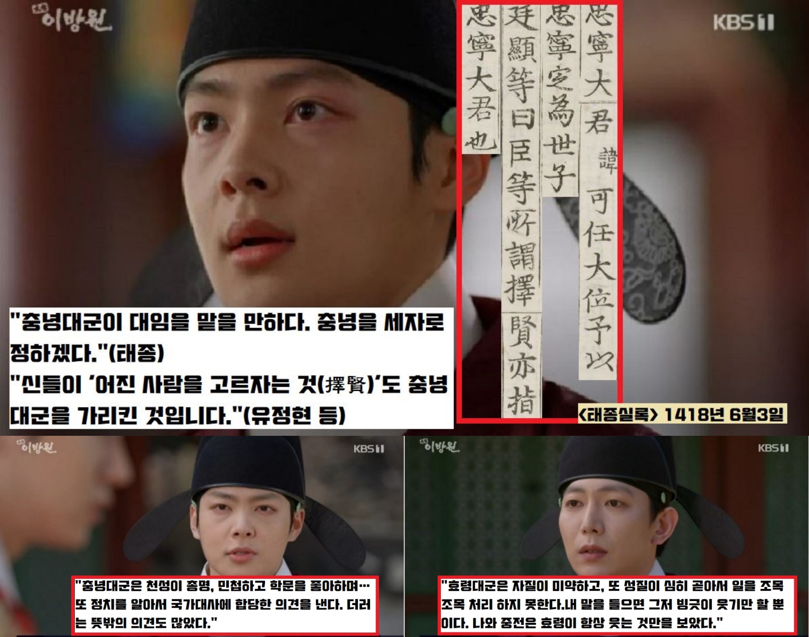 태종이 차기 세자를 정하는 찰나의 과정이 흥미롭습니다. 태종이 외외로 오락가락한 모습을 보여준건데요.