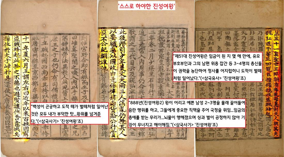 서라벌 시내에 나붙은 대자보의 내용은 진성여왕과 각간 위홍 등 측근 세력의 국정농단을 비판한 것이었다.