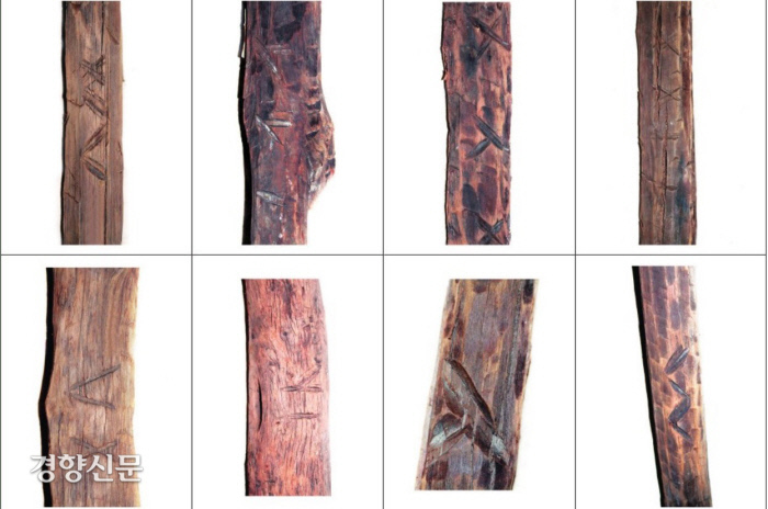 그런데 자단목마다 표면에 새겨진 한자 부호나 숫자, 혹은 아라비아 숫자가 주목을 끄는데요.